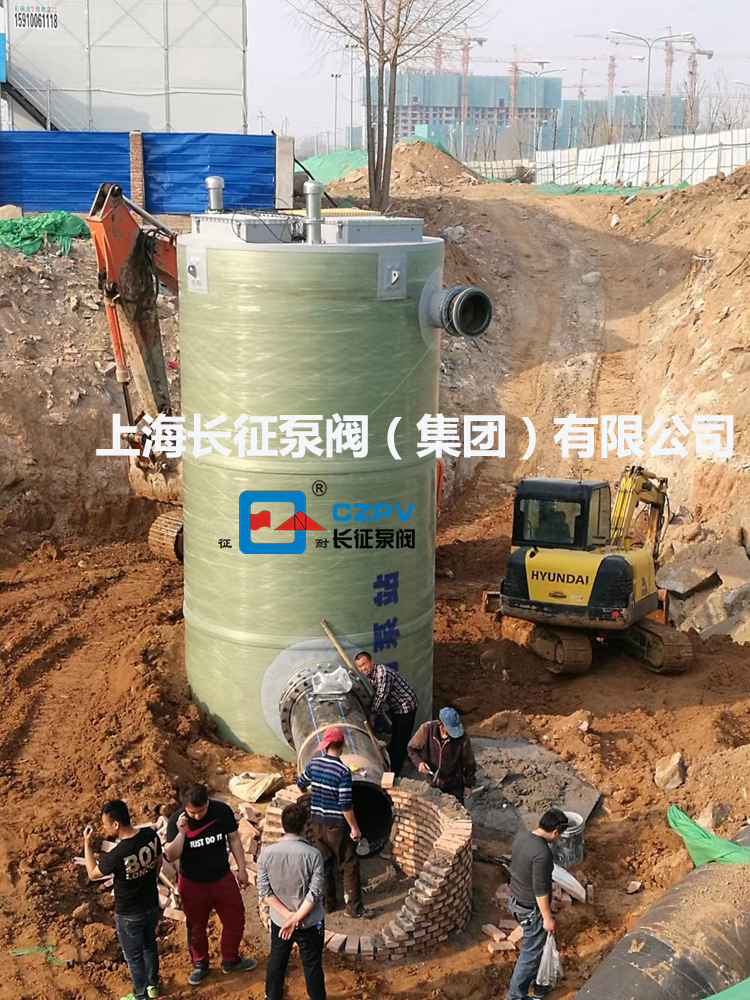 泵站筒體材質(zhì)為玻璃鋼材質(zhì),內(nèi)部配件使用SUS304和熱鍍鋅等防腐材質(zhì);